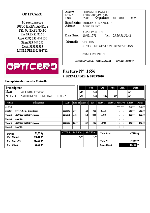 Logiciel pour opticiens